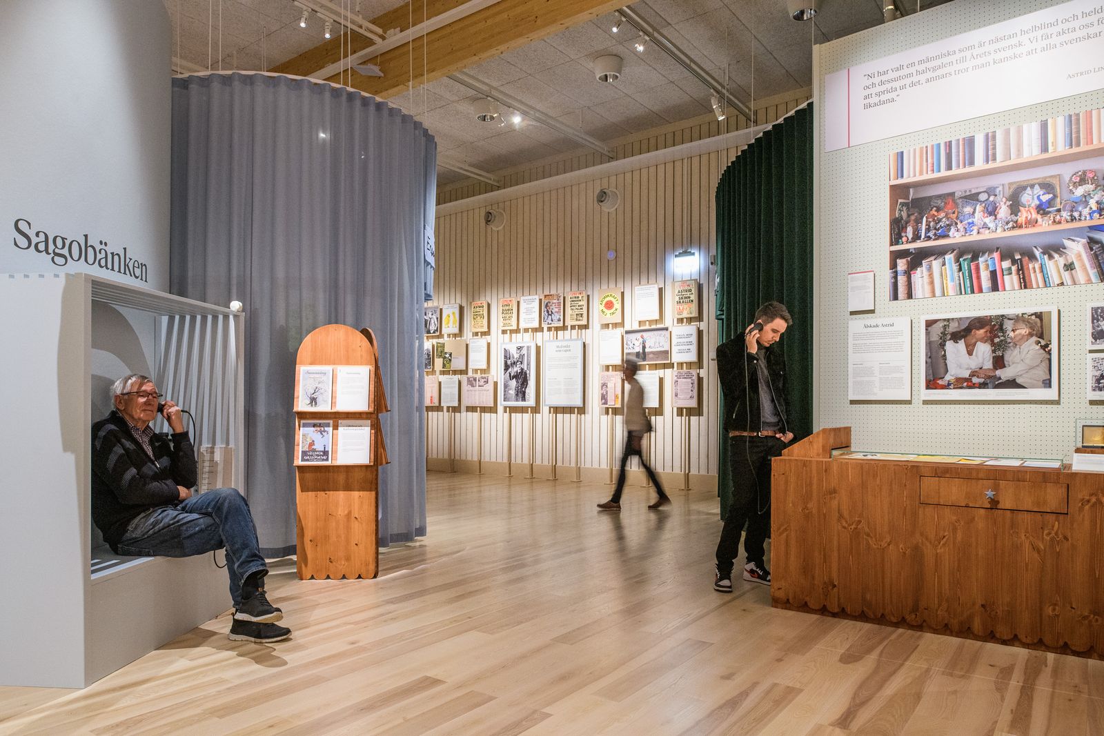 In the thematic sections, the spaces become more enveloping, and the expression is intensified.The poetic expression gives the space a dreamlike mood and gives visitors a chance to get closer to Astrid Lindgren and the subjects that influenced her and her writing.