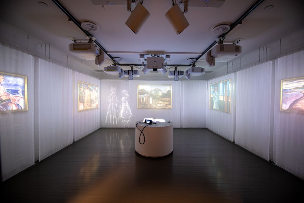 The exhibition consists of an immersive film projection where visitors experience Munch's art up close and in motion. When set to gallery mode, guests can engage with four interactive installations in the space. This includes painting like Munch, reading his digital diary, taking pictures inspired by his paintings, as well as being a part of a Munch painting. The latter can be uploaded and shared to social media.