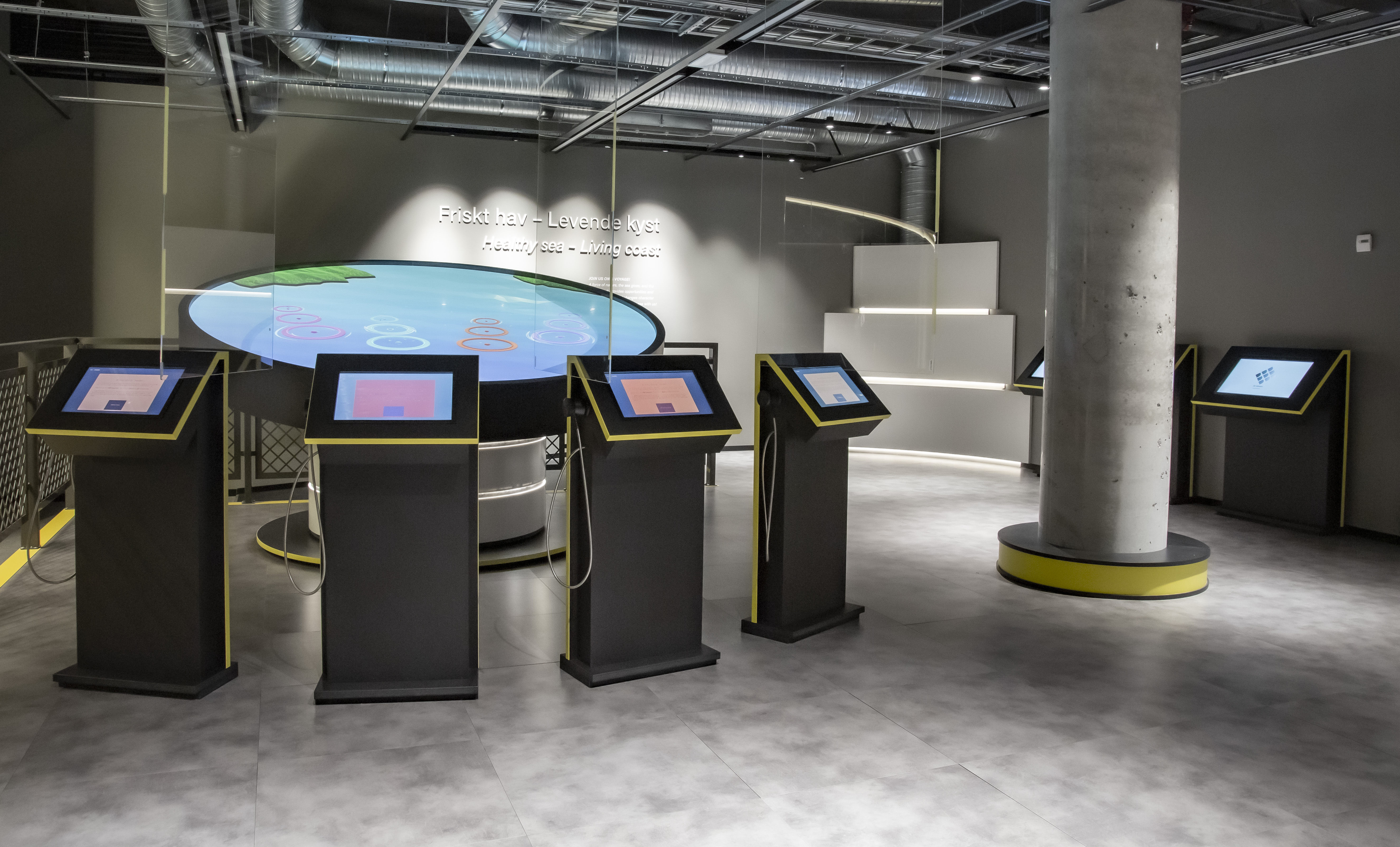 The exhibition has an educational focus and encourages visitors to engage at on various levels. Whether they prefer to explore at their own pace or participate in a game challenging them to take on the role of salmon farmer for a year, visitors dive deeper into themes like sustainability, common myths, wild vs farmed fish, and the Norwegian coastline.